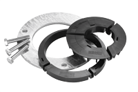 Excentre set for pipe diameters between 77.0 mm and 81.5 mm; Contents: Clamping ring (screw ring for long-lasting fixing), excentre (for the adjustment and fixing into place of pipes), hexagonal screws (for fixing the clamping ring in place)
