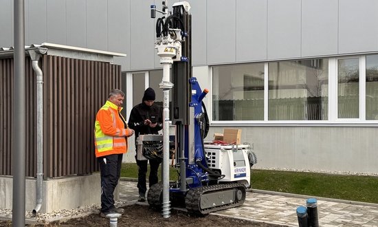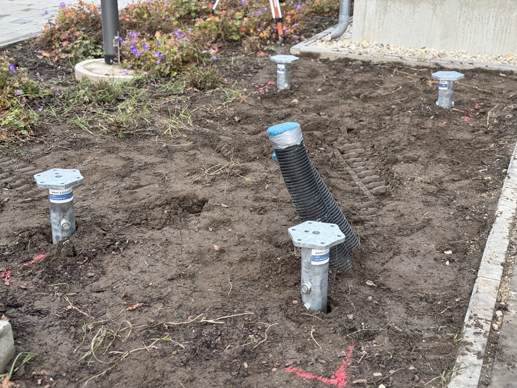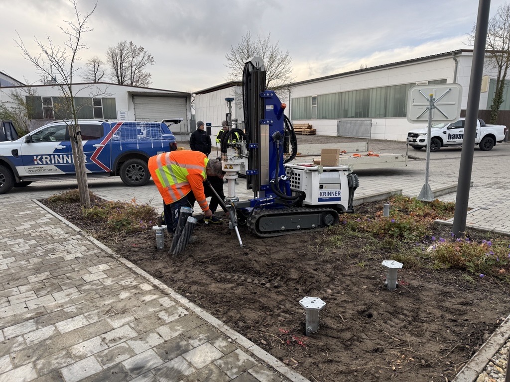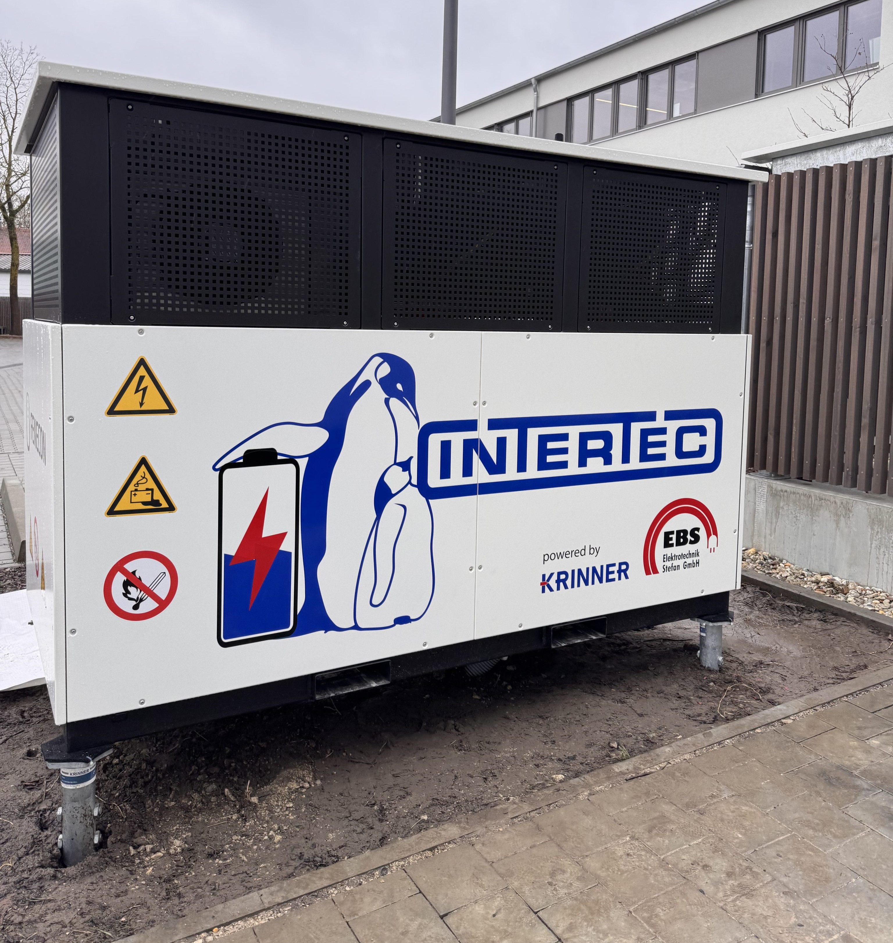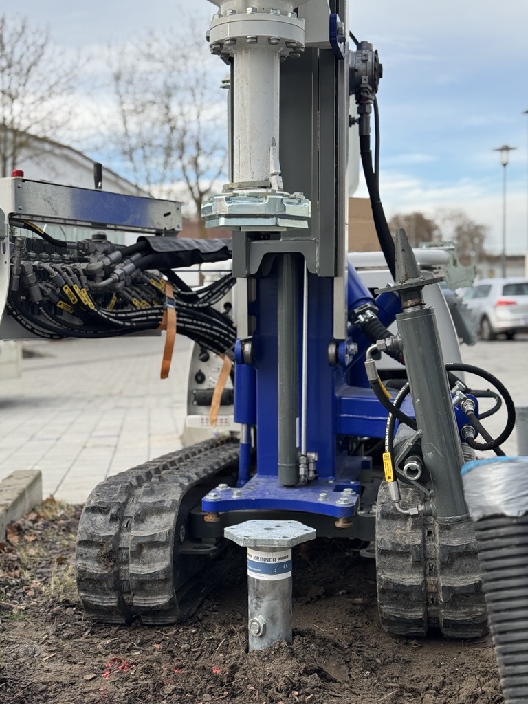 Für den Energiespeicher auf dem Firmengelände der Intertec GmbH in Neustadt an der Donau wurde eine minimalinvasive Gründungsmethode gewählt: Vier KRINNER Schraubfundamente (Typ V114) übernehmen die tragende Funktion und bilden ein stabiles Fundament für den Energiespeicher. Diese Lösung ermöglicht eine sichere, tragfähige und zugleich bodenschonende Gründung – ganz ohne Flächenversiegelung oder aufwendige Erdarbeiten. Dank der sofort belastbaren Schraubfundamente war keine Aushärtungszeit erforderlich, so dass der Energiespeicher sofort montiert und befestigt werden konnte.